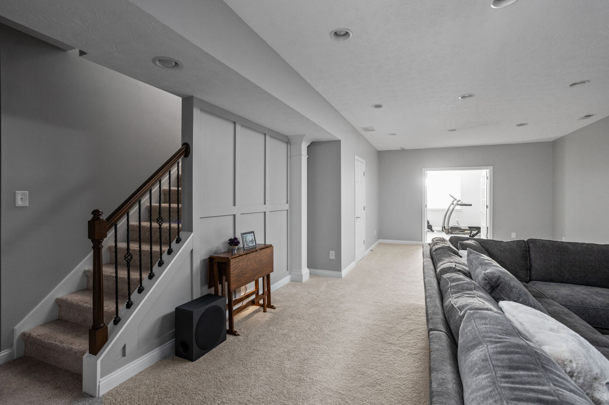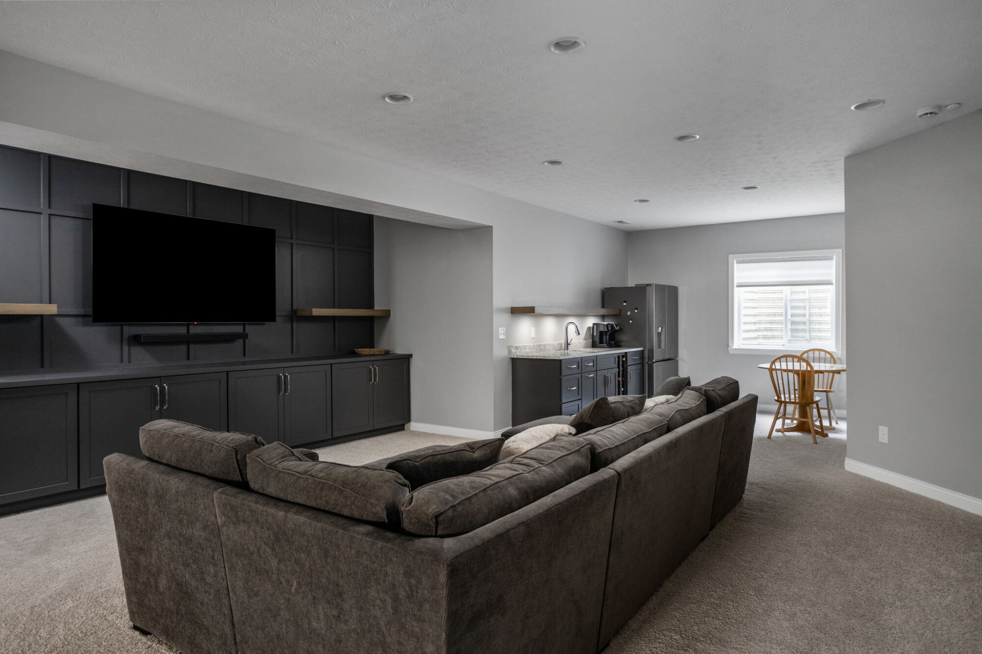 A Finished Basement with Space for Entertaining, Guests, and Daily Life