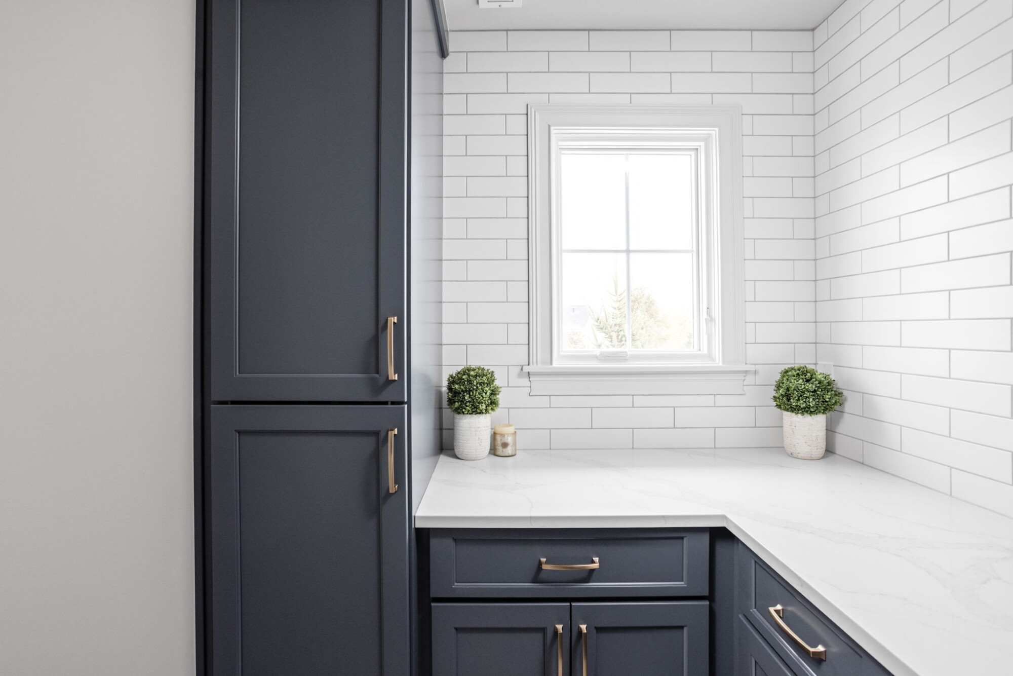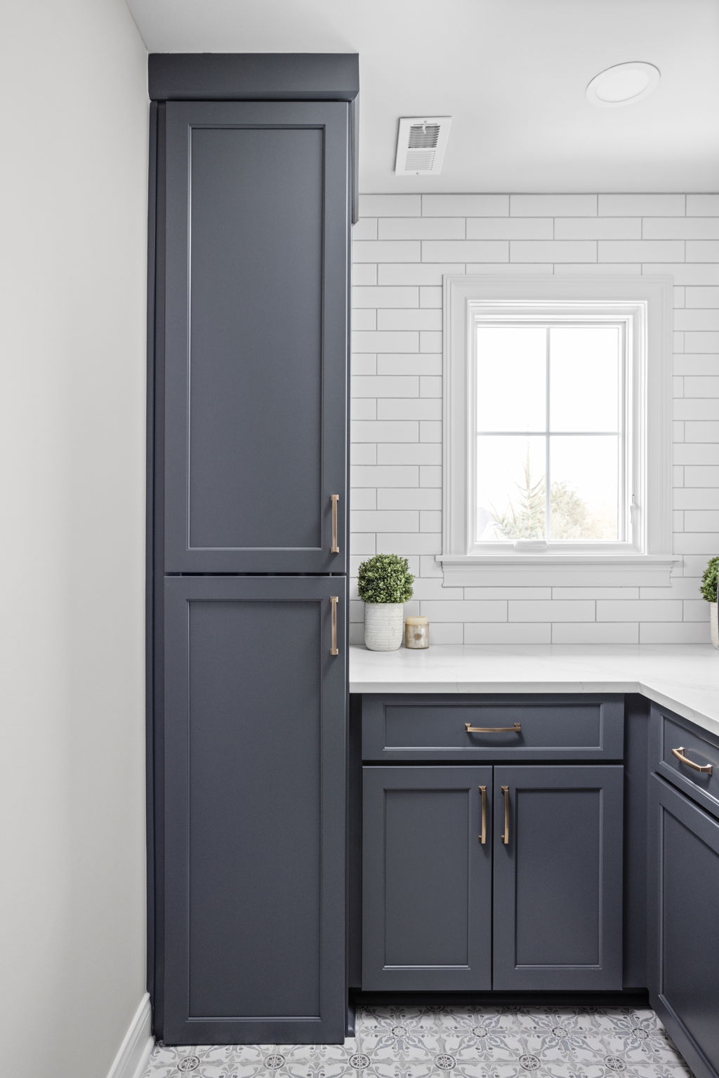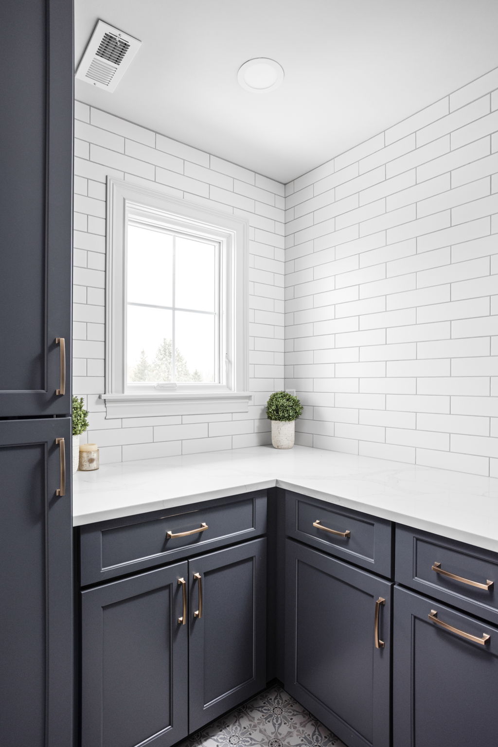 The laundry room renovation brings the same level of planning into a space that often gets overlooked. In this home, the laundry room was redesigned with custom cabinetry, new counters, a tile backsplash, a new apron front sink, updated paint, improved venting, and a more intentional built in arrangement around the washer and dryer. Rather than treating the laundry room as a purely utilitarian space, the remodel gives it the same sense of finish seen elsewhere in the home.