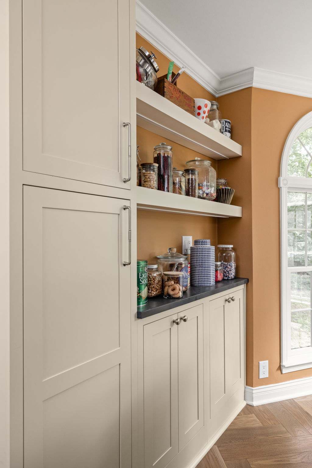 In this project, the second island and hospitality wall shoulder much of the everyday load. Open shelves hold snacks and baking jars that look good on display and are ready for grab-and-go moments. Closed storage keeps seasonal pieces and less pretty items out of sight. A beverage refrigerator takes pressure off the main fridge; it’s a small move with an out-sized payoff during holidays and parties.
